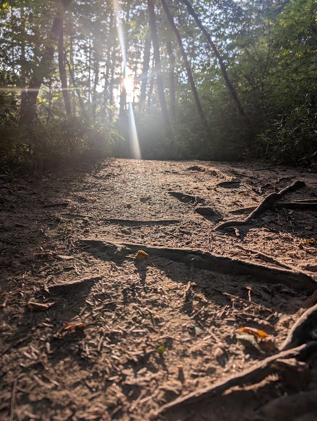根っこでうねるようになった地面につまずき、